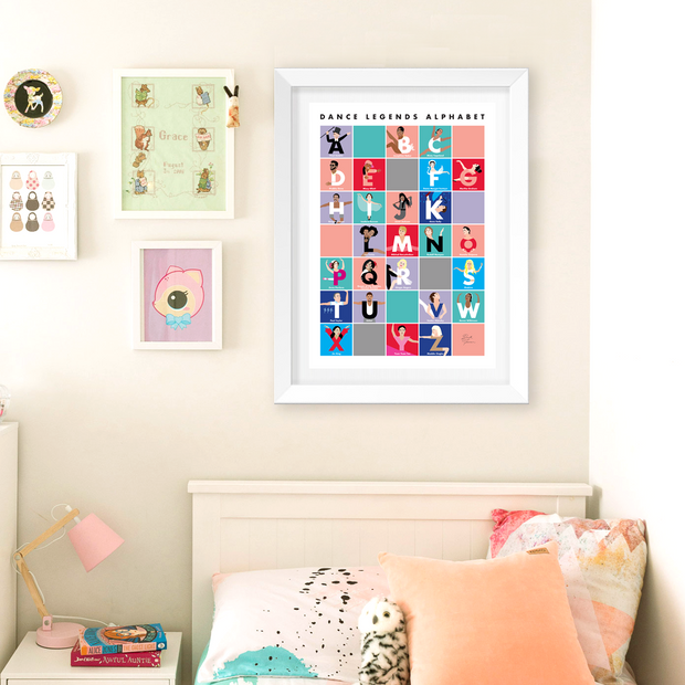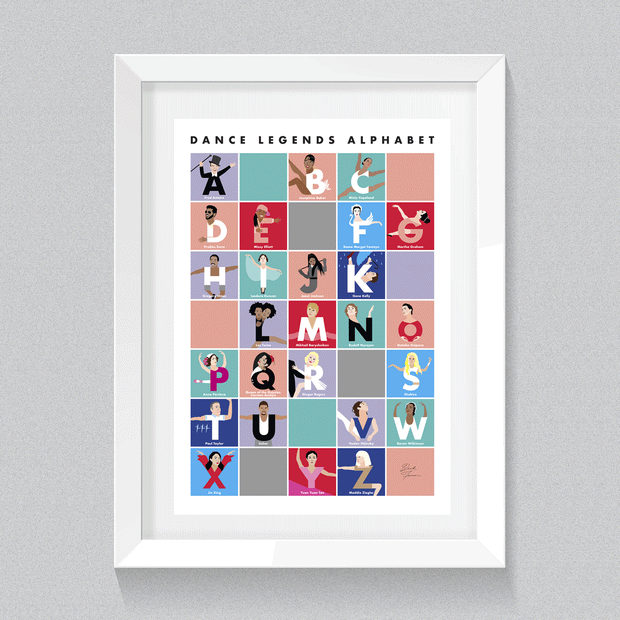 The perfect wall poster for any buddy dancing. From Fred Astaire to Maddie Ziegler, Misty Copeland to Janet Jackson, Dance Legends Alphabet shimmies and shakes through eras and genres to present the quintessential A to Z of dance. Dance Legends Alphabet is the perfect move for every young dance enthusiast.
