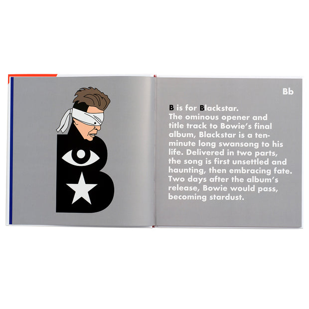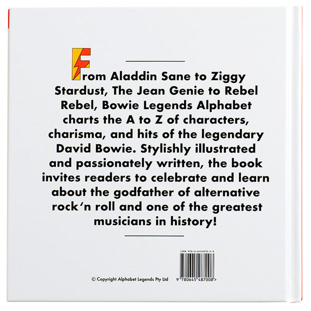 From Aladdin Sane to Ziggy Stardust, The Jean Genie to Rebel Rebel, Bowie Legends Alphabet charts the A to Z of characters, charisma, and hits of the legendary David Bowie. Stylishly illustrated and passionately written, the book invites readers to celebrate and learn about the godfather of alternative rock ‘n roll and one of the greatest musicians in history!