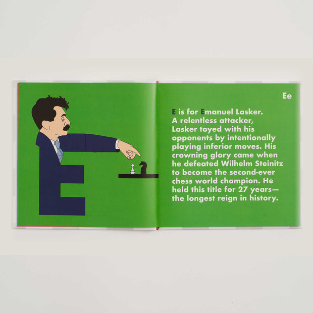 From Kasparov to Capablanca, Polgar to Fischer, Chess Legends Alphabet is an A to Z of the most celebrated chess maestros to ever play the game. Grab your rooks, knights, and board, and prepare for a masterfully illustrated journey sure to captivate chess fans of all ages!