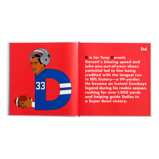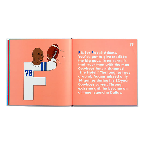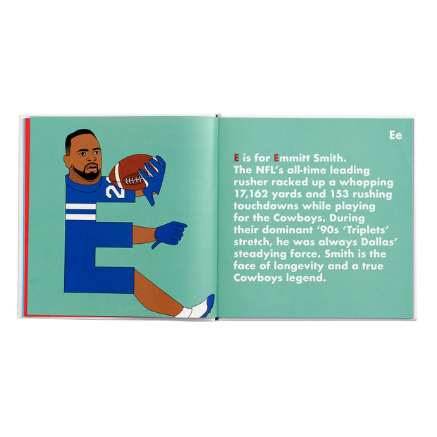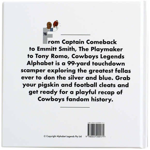 From Captain Comeback to Emmitt Smith, The Playmaker to Tony Romo, Cowboys Legends Alphabet is a 99-yard touchdown scamper exploring the greatest fellas ever to don the silver and blue. Grab your pigskin and football cleats and get ready for a playful recap of Cowboys fandom history.