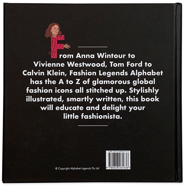 From Anna Wintour to Vivian Westwood, Tom Ford to Calvin Klein, Fashion Legends Alphabet has the A to Z of glamorous global fashion icons all stitched up. Stylishly illustrated, smartly written, this book will educate and impassion your little fashionista.