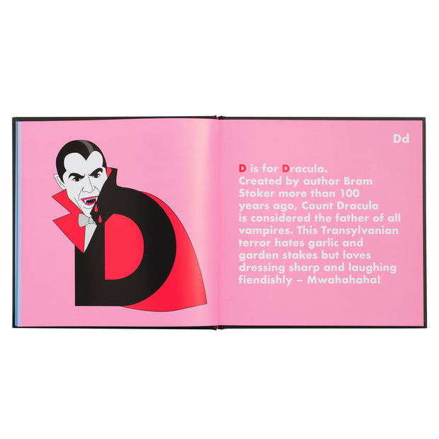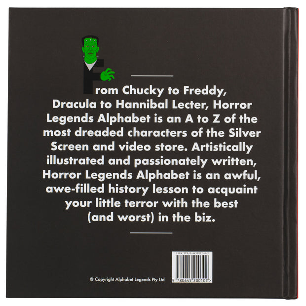 From Chucky to Freddy, Dracula to Hannibal Lecter, Horror Legends Alphabet is an A to Z of the most dreaded characters of the Silver Screen and video store. Artistically illustrated and passionately written, Horror Legends Alphabet is an awful, awe-filled history lesson to acquaint your little terror with the best (and worst) in the biz.