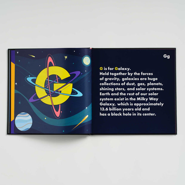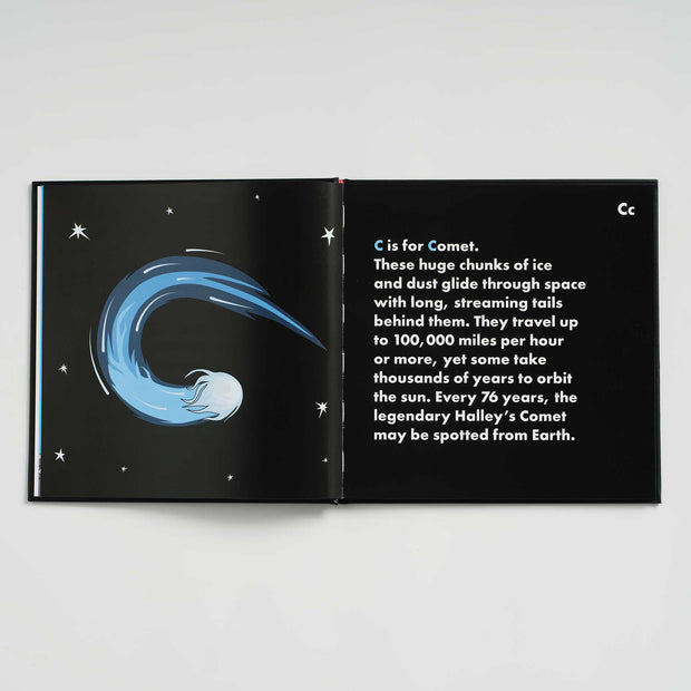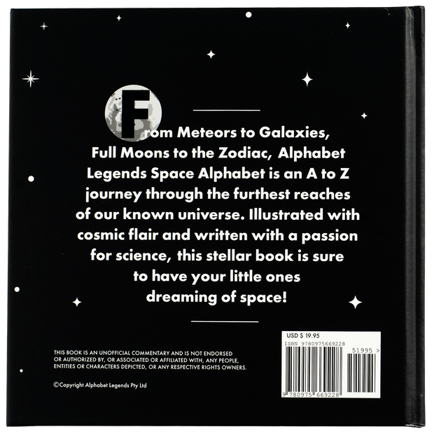 From Meteors to Galaxies, Full Moons to the Zodiac, Alphabet Legends Space Alphabet is an A to Z journey through the furthest reaches of our known universe. Illustrated with cosmic flair and written with a passion for science, this stellar book is sure to have your little ones dreaming of space!
