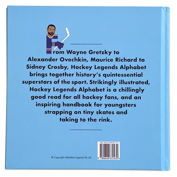 From Wayne Gretzky to Alexander Ovechkin, Maurice Richard to Sidney Crosby, Hockey Legends Alphabet brings together history’s quintessential superstars of the sport. Strikingly illustrated, Hockey Legends Alphabet is a chillingly good read for all hockey fans, and an inspiring handbook for youngsters strapping on tiny skates and taking to the rink.