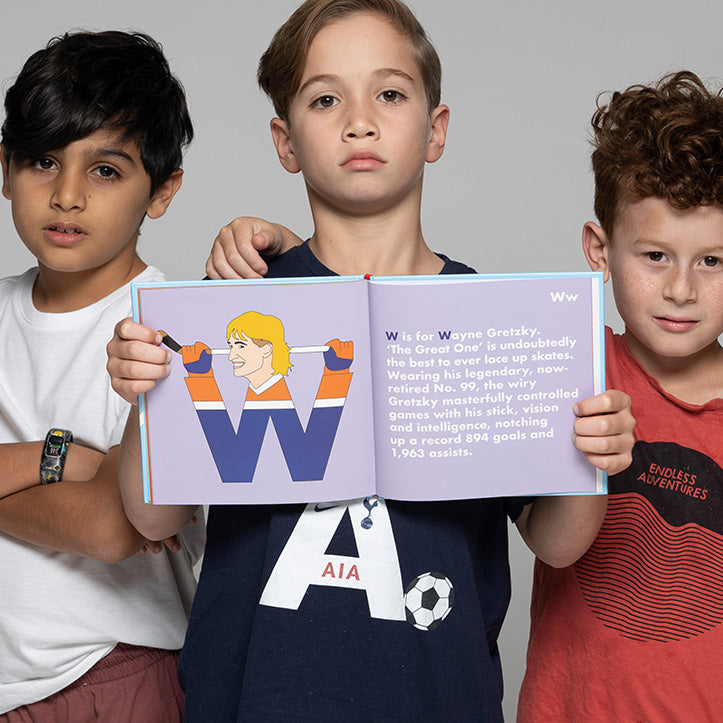 From Wayne Gretzky to Alexander Ovechkin, Maurice Richard to Sidney Crosby, Hockey Legends Alphabet brings together history’s quintessential superstars of the sport. Strikingly illustrated, Hockey Legends Alphabet is a chillingly good read for all hockey fans, and an inspiring handbook for youngsters strapping on tiny skates and taking to the rink.